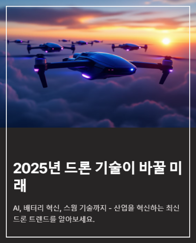 AI, 배터리 기술, 센서 기술의 발전과 함께 드론의 활용 범위는 계속해서 확장될 것입니다.