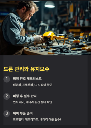 - 비행 후 필수 관리: 먼지 제거, 배터리 충전 상태 확인