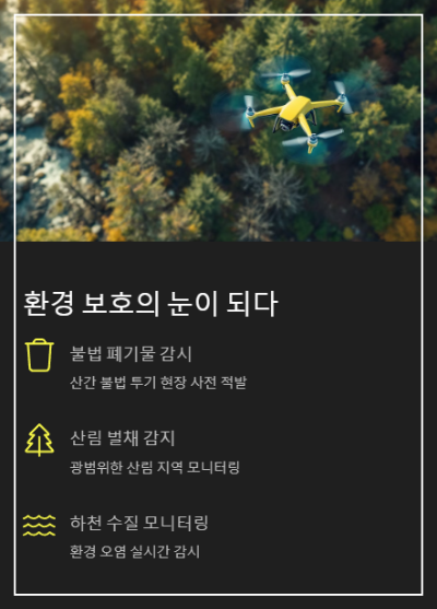 환경 감시와 자원 보호 불법 폐기물 감시, 산림 벌채 감지, 하천 수질 모니터링 등 광범위한 환경 분야에 드론이 투입됩니다.