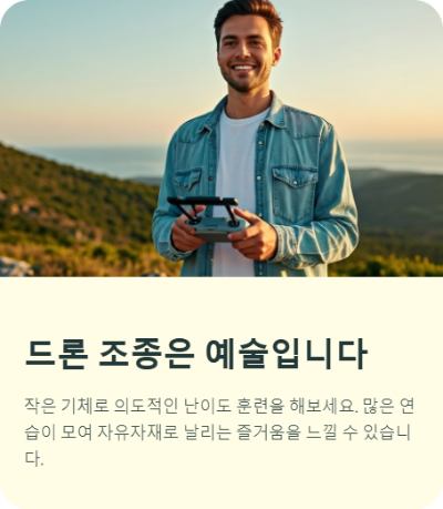 드론조종 꿀팁: 처음엔 저속·저고도 상태로 호버링하다가, 바람 세기를 미묘하게 느껴보는 식으로 감각을 익히세요.