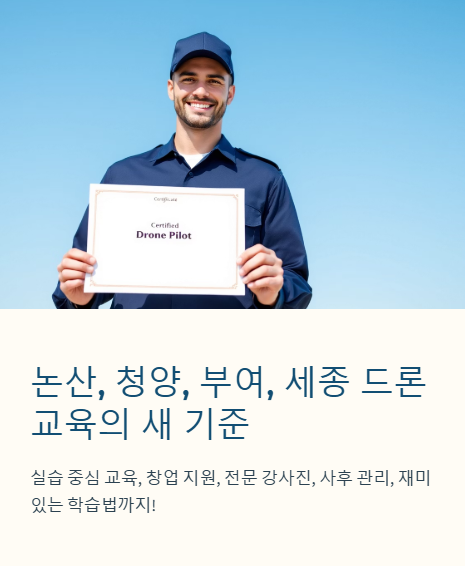 특히 논산드론, 청양드론, 부여드론, 세종드론 지역의 교육원을 살펴봤을 때, 주변 지인들이 한결같이 추천한 곳이 '구구드론'이었습니다.