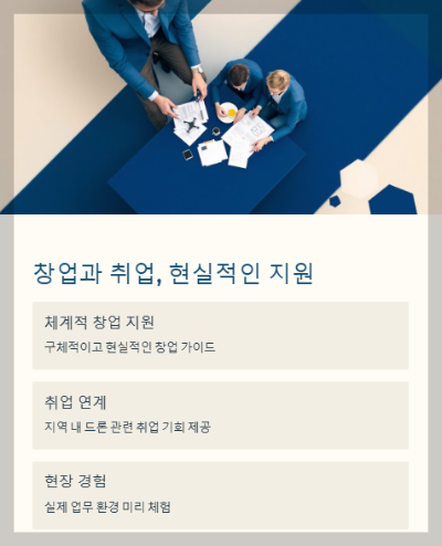 구구드론은 논산드론, 청양드론, 부여드론, 세종드론 지역 내에서 드론 관련 창업과 취업 지원이 가장 체계적으로 이루어지고 있습니다.