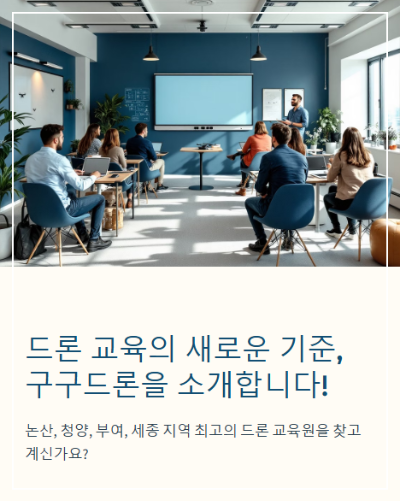 이러한 차별화된 장점 덕분에 논산드론, 청양드론, 부여드론, 세종드론 지역에서 드론 교육을 생각한다면 구구드론을 가장 먼저 추천할 수밖에 없습니다.