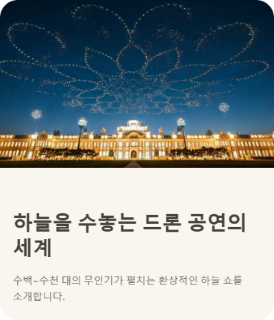 결국, 이 모든 게 “드론 하나하나가 빈틈없이 서로 맞물려 춤을 춘다”라는 놀라움에 기인합니다. “어떻게 저 많은 기체가 부딪치지 않지?”를 넘어, “어떻게 이렇게 정교한 그림을 그리지?”라는 감탄이 펼쳐지는 무대라니, 정말 시대가 많이 변했어요. 여러분도 기회가 된다면, 직접 현장에서 드론공연을 보며 하늘이 빚어내는 장엄한 예술을 만끽해보길 바랍니다.