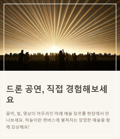 아무리 멋진 공연이라도, 하늘 위 무인기가 예기치 못한 오류를 일으켜 추락할 가능성이 완전히 없진 않습니다. 그래서 대부분 드론공연은 관객과 기체 사이를 충분히 떨어뜨린 구역에서 진행하죠. 저도 공연장에 갔을 때, “이건 너무 멀리서 봐야 하는 거 아냐?”라고 느꼈는데, 막상 시작하면 멀리서도 충분히 장관을 즐길 수 있었어요.
