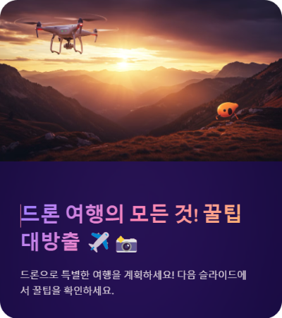 그렇지만 올바르게 사용한다면 여행에 한 단계 더 높은 감성을 불어넣는 도구가 될 수 있다. 바람과 함께 상공을 누비며 새로운 시선을 얻고, 그 순간을 영상으로 간직하는 기쁨—그게 바로 드론 여행이 주는 특별함이다.