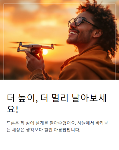 혹시 하늘을 날아보는 꿈을 갖고 있다면, 여러분도 주저하지 말고 드론과 함께 그 꿈을 이루어보세요. 하늘 위에서 바라보는 세상은 여러분이 생각하는 것보다 훨씬 아름답고 멋지답니다.