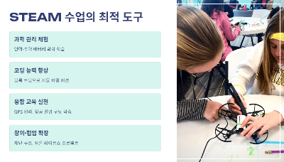 초·중등 STEAM 수업에서 드론은 과학·수학 원리를 ‘눈에 보이게’ 하는 최적의 도구입니다. 학생들은 드론 키트를 조립하며 양력·추력·배터리 화학을 체험하고, 블록 코딩으로 자율 비행 미션을 해결하면서 알고리즘적 사고를 익힙니다. 교사들은 지구과학 시간에 GPS와 위성항법 원리를, 예술 시간엔 항공 촬영 구도를 지도해 교과 간 경계를 허무는 융합 수업을 완성합니다. 팀 프로젝트로 재난 구조 시나리오를 설계하거나 드론 라이트쇼를 구현하면 창의·협업 능력이 폭발적으로 확장됩니다.