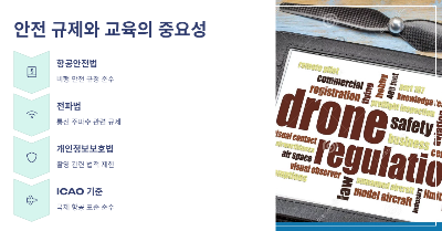 드론에는 편리함만큼 엄격한 규제가 따릅니다. 항공안전법·전파법·개인정보보호법을 모두 충족해야 하고, 비가시권(BVLOS) 비행이나 도심항공(UAM) 운항 시 ICAO 기준을 준수해야 합니다. 최근 개정안은 250g 이하 기체도 촬영 목적이라면 사전 비행 승인 절차를 의무화해 교육 없이는 합법 운용이 사실상 불가능해졌습니다. 체계적인 드론교육은 최신 법령·절차·비상대응 매뉴얼을 숙지시켜 ‘안전 문화’를 뿌리내리는 핵심 장치가 됩니다.