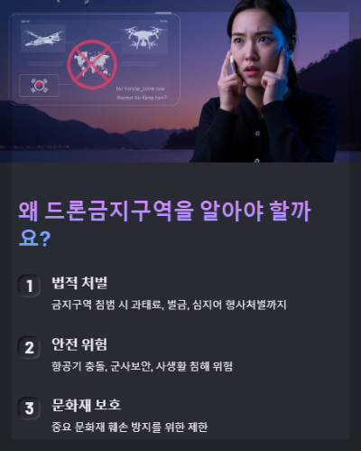 문화재 보호: 일부 중요 문화재 지역은 드론 충돌이나 소음으로 인한 훼손 위험을 줄이기 위해 허가제를 실시하기도 하죠.