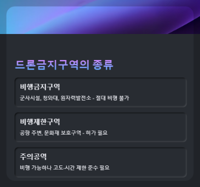 고도·시간 준수: 제한구역이 아니더라도, 야간 비행 또는 일정 고도 이상 비행이 불가능한 곳이 있을 수 있으니 신경 써야 합니다.