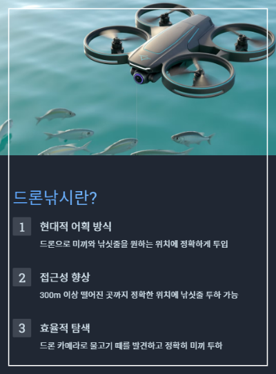 드론낚시는 말 그대로 드론과 낚시를 접목한 현대적 어획 방식입니다.