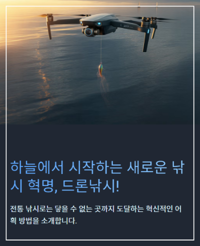 마치며: 전통과 현대의 조화, 드론낚시 드론낚시는 첨단 기술과 전통적인 낚시의 매력을 동시에 느낄 수 있는 새로운 형태의 어획 방법입니다.