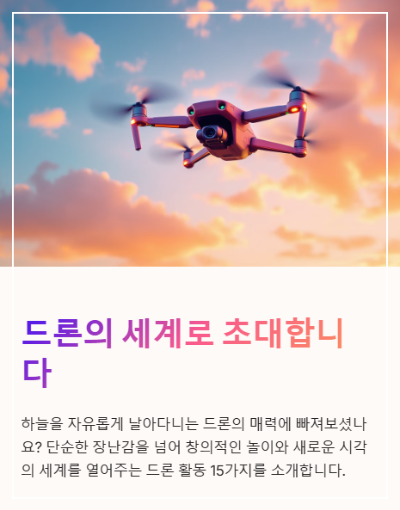 하지만 점차 다양한 활동을 시도하면서 무인항공기의 진정한 매력을 발견하게 되었습니다.