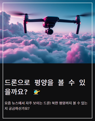 궁금한 질문: 요즘 뉴스에서 많이 나오는 드론! 혹시 이걸로 북한 평양까지 볼 수 있을까요?