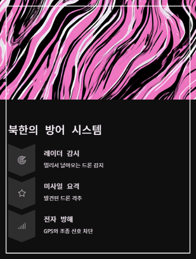 2017년에 한국 드론이 실수로 북한 지역에 떨어진 적이 있어요. 북한은 바로 그 드론을 찾아서 회수했답니다. 이것만 봐도 드론 방공망이 얼마나 잘 되어 있는지 알 수 있어요.