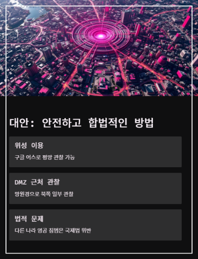 요즘 드론 평양 감시에 대한 뉴스가 자주 나오죠? 특히 우크라이나 전쟁에서 드론이 엄청 활약하는 모습을 보면서 "우리도 이런 걸로 북쪽을 볼 수 있지 않을까?"라는 생각이 들 수 있어요.