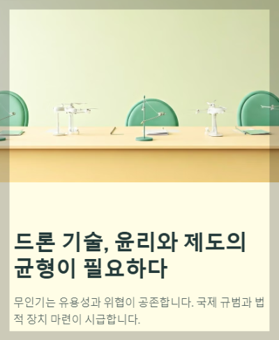 따라서 제도·법적 장치가 국제사회적으로 마련돼야 한다는 지적도 늘어납니다. 기술 자체는 막을 수 없고, 무인기는 더 작고 저렴해지는 추세이므로, 그 유용성과 위협이 동전의 양면처럼 따라다닌다는 거죠. 국제 규범이나 지역별 지침을 통해 무인기 운용을 일정 부분 통제하지 않으면, 제2, 제3의 가자지구공습이 반복될 가능성이 높다고 전문가들은 경고합니다.
