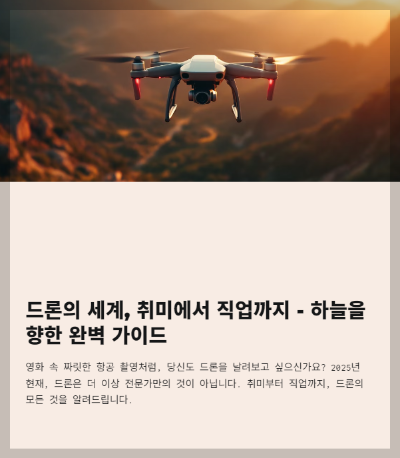 영화 속 한 장면처럼 카메라가 하늘을 가로지르며 짜릿한 전경을 보여주던 그 순간, 당신도 언젠가 드론을 날려 보고 싶다는 생각을 한 적이 있나요?