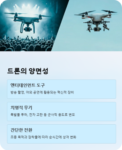 드론이라고 하면 대부분 처음에는 방송 촬영용 장비나 산악지대 수색을 돕는 유용한 도구 정도로 떠올리기 쉽습니다. 저도 한때 “엔터테인먼트드론”이 세상을 바꿀 거라며 긍정적 측면만 강조하곤 했죠.