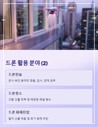 방제, 촬영, 교육뿐 아니라 최근에는 드론청소, 드론 화재진압까지…