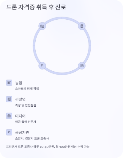 드론자격증 취득 후 다양한 진로 탐색 드론자격증을 취득하면 다양한 분야에서 전문성을 발휘할 수 있습니다.