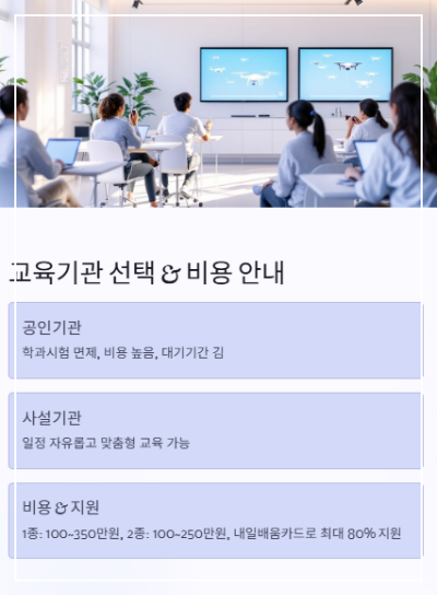 드론교육기관 선택 시 유의사항 공인 교육기관과 사설 학원 중 선택할 때는 자신의 상황을 잘 고려해야 합니다.