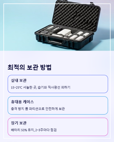 저도 처음엔 “비행만 잘하면 됐지, 굳이 보관에 뭘 그렇게 공들여?”라고 생각했지만, 한두 달 지나니 기체성능이 조금씩 떨어지는 걸 느꼈죠. 알고 보니 보관법이 엉망이었고, 모터부나 배터리에 먼지·습기가 쌓여서 잔고장이 늘어났습니다.