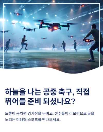 ✍️ 마무리: 스포츠의 미래, 지금 만난다 드론축구는 단순한 드론 조종이 아닌, 새로운 차원의 스포츠적 사고를 요구하는 도전입니다.