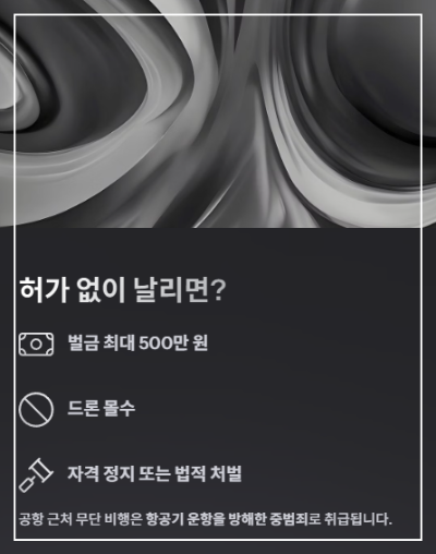 특히 공항 근처에서 무단 비행은 항공기 운항을 방해한 중범죄로 취급돼요.