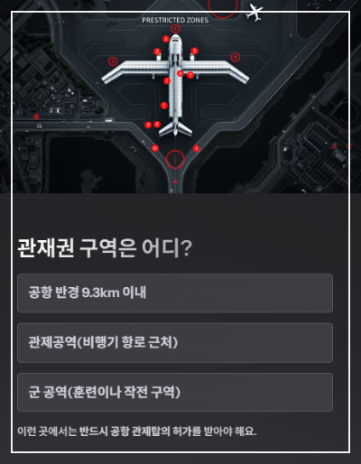 이 구역에서 드론을 허가 없이 날리면 충돌 사고가 날 수도 있어요.