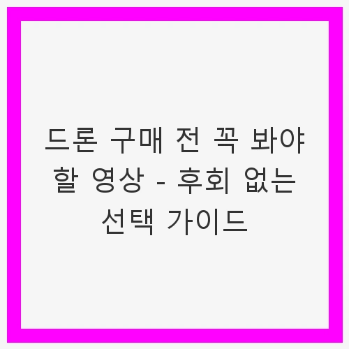 드론 구매 전 꼭 봐야 할 영상과 필수 정보를 통해, 보다 현명하게 드론을 선택할 수 있습니다. 드론은 즐거운 취미이자, 창의적인 콘텐츠 제작의 도구가 될 수 있습니다. 하지만 잘못된 선택은 후회로 이어질 수 있으므로, 충분한 정보 수집과 세심한 선택이 중요합니다. 이 가이드를 통해 드론 구매에 대한 명확한 방향성을 얻고, 흥미로운 드론 비행의 세계로 나아가길 바랍니다.