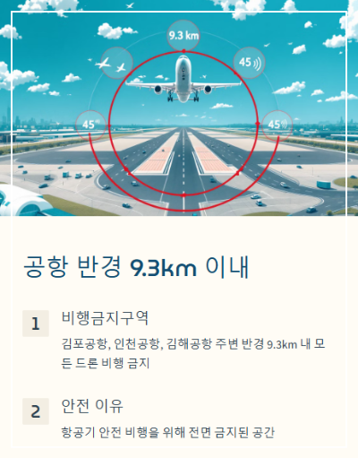 1. 공항 반경 9.3km 이내 (비행금지구역)