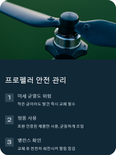 정품 또는 호환 인증 제품: 규격에 맞지 않는 프로펠러를 끼우면 회전축 흔들림, 진동 증가, 추력 불균형이 생깁니다.