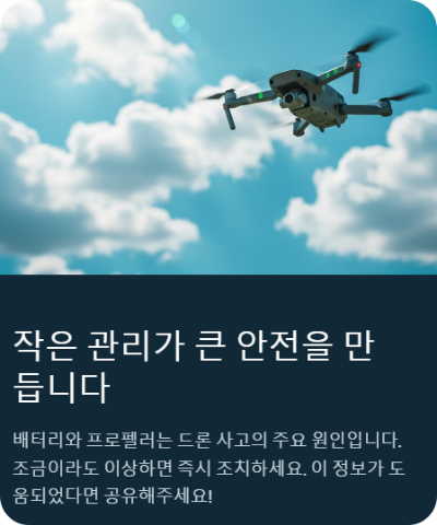 무인항공기는 하늘을 자유롭게 누비는 존재인 동시에, 부품 하나가 망가져도 즉각 문제가 생기는 섬세한 기기입니다. 배터리 과열과 프로펠러 파손은 그중에서도 대표적인 ‘사고 유발 요인’으로 꼽힙니다.