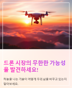 안녕, 여러분! 몇 년 전, 우연히 한 친구의 결혼식에서 드론으로 찍은 영상을 보게 됐는데, 그 화질과 창의적인 각도에 완전히 매료됐어요. 그날 이후 드론에 대한 호기심이 시작됐고, 어느새 이 놀라운 기술이 어떻게 우리의 삶을 바꾸고 있는지 알아가게 됐죠. 처음엔 그냥 취미로 시작했지만, 점점 드론 시장의 크기와 잠재력에 놀라움을 금치 못했어요. 오늘은 제 경험을 바탕으로 드론 시장의 현재 모습과 미래 전망을 자연스럽게 풀어볼게요. 혹시 여러분도 드론에 관심이 생겼거나, 이 시장에 뛰어들까 고민 중이라면, 이 글이 작은 영감이 될 수 있을 거예요. 그럼 함께 떠나볼까요?