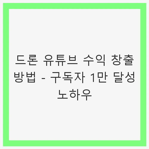 드론 유튜브 수익 창출 방법 - 구독자 1만 달성 노하우에 대한 관심이 높아지고 있습니다. 유튜브 플랫폼은 비디오 콘텐츠를 통해 많은 사람들에게 쉽게 접근할 수 있는 기회를 제공합니다. 드론은 그 자체로도 매력적인 소재이며, 다양한 분야에서 활용될 수 있기 때문에 드론 관련 콘텐츠는 많은 사람들의 관심을 끌고 있습니다. 그러나 단순히 드론을 활용한 영상을 제작하는 것만으로는 성공적인 유튜브 채널을 운영하기 어렵습니다. 이 글에서는 구독자 1만 달성을 위한 전략과 수익 창출 방법에 대해 심도 깊은 논의를 진행하겠습니다.