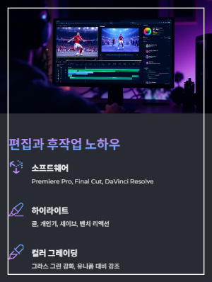 - 하이라이트 선택 – 골, 개인기, 세이브 + 벤치 리액션 컷.