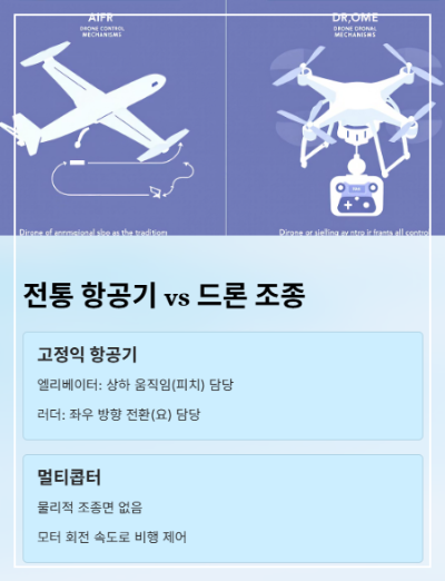 전통 항공기와 드론 조종면의 차이