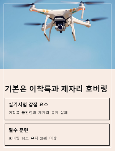 실제로 실기시험에서 가장 많이 감점되는 부분은 이착륙 불안정과 제자리 유지 실패입니다.