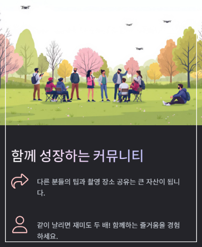 혼자서도 충분히 재미있지만, 드론 커뮤니티에 들어가면 배울 게 정말 많아요. 다른 분들의 팁이나 촬영 장소 공유는 큰 자산이 되거든요. 같이 날리면 재미도 두 배!