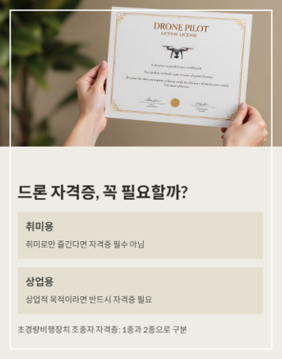 결론부터 말하면, 드론을 취미로 즐기는 경우라면 필수는 아니지만, 상업적인 목적으로 드론을 활용하고 싶다면 반드시 필요합니다.