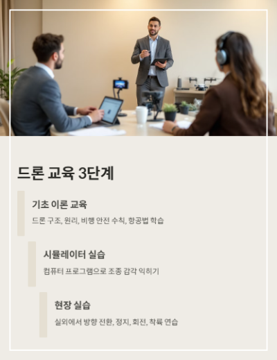 초보자가 받는 드론 교육은 크게 다음과 같은 3단계로 나눌 수 있습니다.