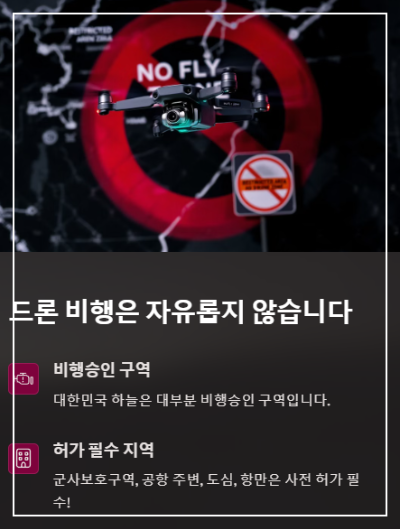항공법상 대부분의 지역은 비행승인 구역으로 지정되어 있으며,특히 군사보호구역, 공항 주변, 도심, 항만 등은 무조건 사전 허가를 받아야만 드론을 날릴 수 있습니다.