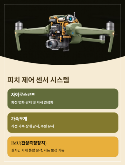 피치 제어에 활용되는 센서 시스템 무인멀티콥터는 내부적으로 다음 센서를 통해 피치를 정밀하게 제어합니다.