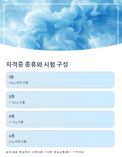 드론 자격증 종류와 시험 구성 드론 국가자격증은 총 4종류로 나뉘며,