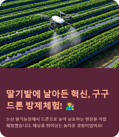언젠가 이 기술이 전국 곳곳으로 퍼져, 더 많은 농민이 “드론 방제 덕에 한결 편해졌다”는 이야기를 하게 될 거란 예감이 듭니다. 오늘 방제체험은 그런 미래를 잠시 맛본 기회였다 싶어요. 기술 발전이란 결국 사람들에게 편익을 안겨주어야 진짜 의미가 있잖아요. 구구드론처럼 안정적이고 효율 높은 기체가 농업 혁신에 기여한다면, 우리 식탁에 올라오는 딸기도 더 맛있게 느껴질 것 같네요. 🍓