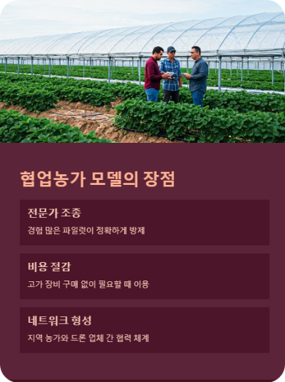 논산 지역에는 무인기 운영 노하우가 있는 업체나 개인과, 딸기 등 작물을 재배하는 협업농가들이 함께 네트워크를 이루고 있다고 합니다. 필요할 때 기체와 파일럿을 부르면, 그날 약 뿌리기를 완료해주는 식이죠.