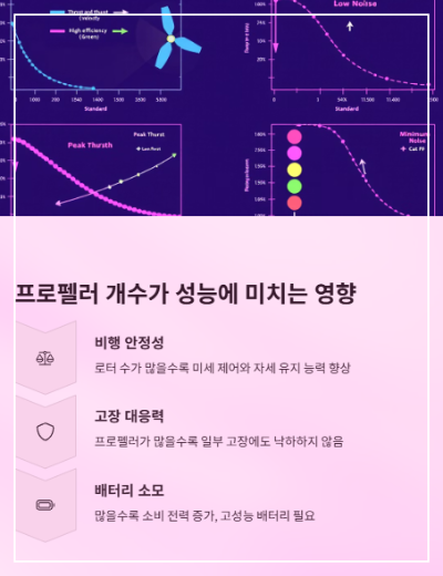 프로펠러 개수가 성능에 주는 영향 비행 안정성: 로터 수가 많을수록 미세 제어와 자세 유지 능력 향상