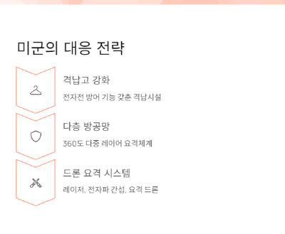 - 전략기지 격납고 강화 고가 자산은 단순 천막이 아닌, 전자전 방어 기능까지 갖춘 격납시설이 필요합니다.
